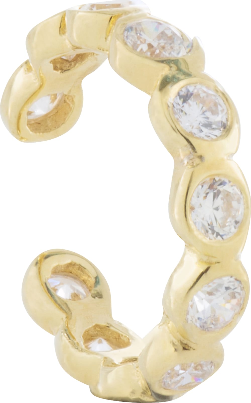 A sparkling white crystal ear cuff designed to hug the middle of the ear and sparkle while worn. No piercing required to wear! Simply slide on from the top of the ear where it's narrower and wiggle down.