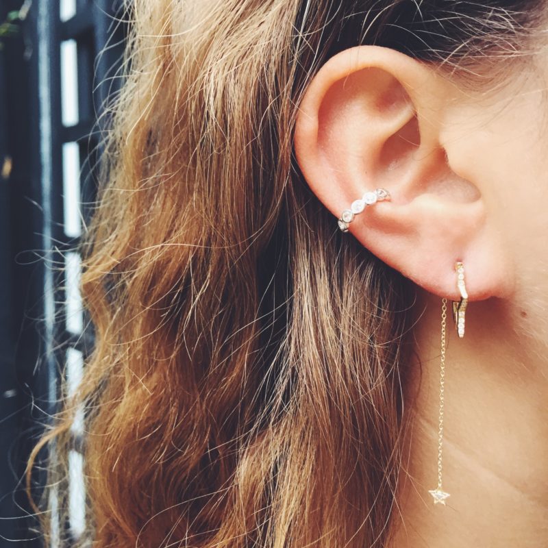SIMPLY REPLACE THE BUTTERFLIES ON YOUR EARRINGS AND HANG THESE BEHIND THE EAR. ADDING A UNIQUE, FUN UPDATE TO YOUR LOOK.
